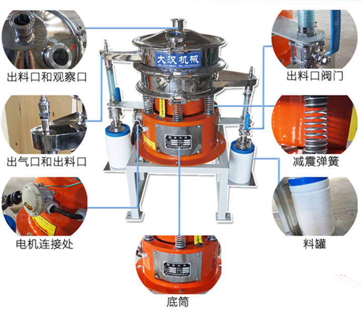 产品优势:气体保护不锈钢振动筛是新乡市大汉振动机械有限公司采用德国研发的一种新型设备,是针对某些物料的特性加装的,比如有些物料不能接触氧气,二氧化碳等等,气体保护振动筛效率